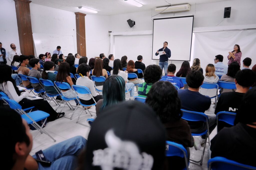 Con el propósito de fortalecer el vínculo entre el gobierno y la comunidad estudiantil, el presidente municipal, Felifer Macías, sostuvo un diálogo con alumnas y alumnos de quinto semestre de la Escuela de Bachilleres “Plantel Sur” de la Universidad Autónoma de Querétaro (UAQ). En este encuentro, al que asistieron más de 100 jóvenes de la asignatura Introducción al Estudio del Derecho, Felifer Macías compartió cómo desde los 12 años nació su interés por la política, hasta consolidarse como uno de los presidentes municipales más jóvenes del país. Felifer Macías compartió con las y los estudiantes cómo desde temprana edad descubrió su interés por participar en la vida pública y trabajar por su comunidad. Señaló que su formación académica en Derecho por la Universidad Autónoma de Querétaro y su experiencia en distintos ámbitos del servicio público le han permitido comprender la importancia de la responsabilidad y la vocación de servir a los demás.