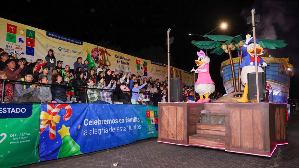 El espectacular Mega Desfile Alegría Querétaro Contigo estuvo conformado por 18 carros alegóricos alusivos a la Navidad, entre los que destacan superhéroes, personajes infantiles, dibujos animados y videojuegos, además de una Fábrica de Santa Claus y un Carro Alegórico Institucional con elementos representativos del estado.