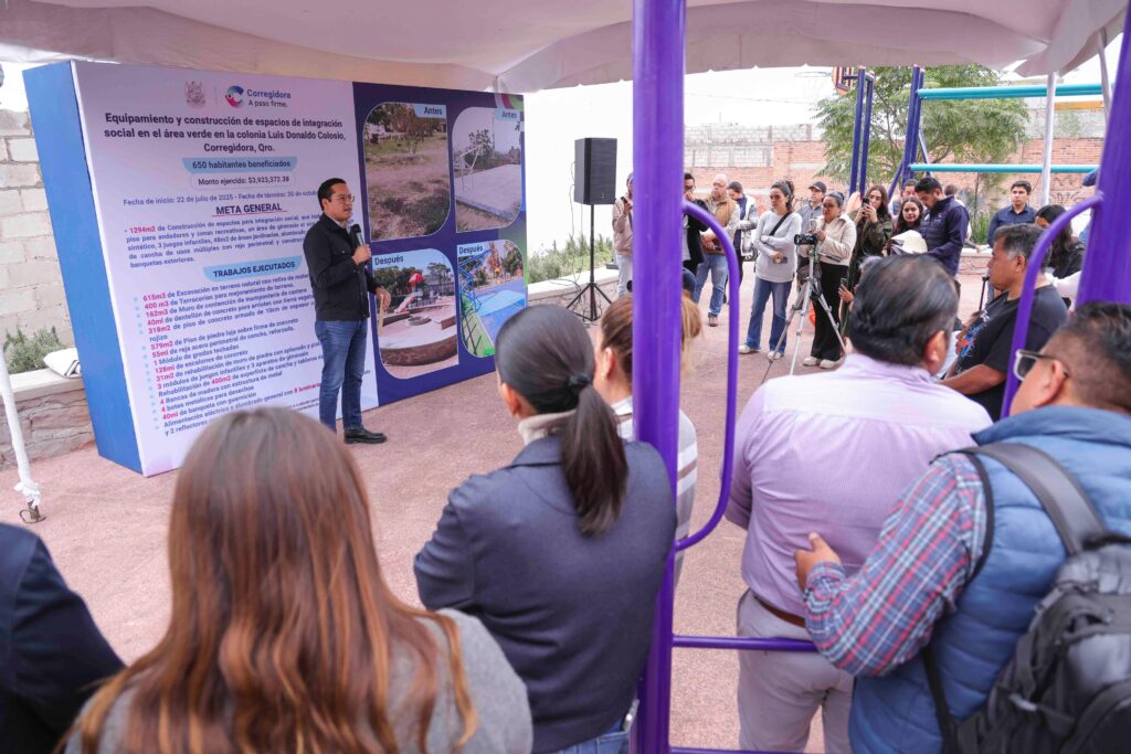 El presidente municipal de Corregidora, Chepe Guerrero, entregó la construcción del parque ubicado en la colonia Luis Donaldo Colosio, en La Negreta, obra que beneficia de manera directa a 650 habitantes de la zona, gracias a una inversión cercana a 4 millones de pesos. Durante el evento, el alcalde aseguró que su administración continuará llevando obra pública al polígono de La Negreta, con énfasis en la urbanización de calles y en la creación de espacios seguros y de sano esparcimiento para todas las familias. “En mi gobierno le estamos apostando fuertemente a la obra pública, principalmente a los parques. Sabemos que necesitamos espacios donde niñas, niños y jóvenes puedan jugar, hacer deporte y realizar actividades que los mantengan alejados de situaciones que nadie queremos. Para ello, es fundamental contar con parques con instalaciones dignas, bonitas y de calidad”, destacó Chepe Guerrero. Por su parte, la titular de la Secretaría de Obras Públicas del Municipio de Corregidora, Viridiana Nava, explicó que la obra incluyó la instalación de piso de concreto y piedra laja, un muro de contención de mampostería de cantera, la rehabilitación de la cancha, así como de tableros de basquetbol y muro de piedra. Además, se colocaron gradas techadas, escalones de concreto, juegos infantiles, aparatos de gimnasio, bancas de madera con estructura metálica, botes para desechos, banqueta con guarnición y se dotó al espacio de alimentación eléctrica con luminarias LED y reflectores.