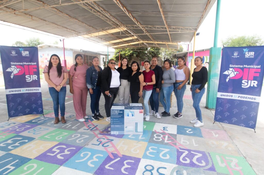 Como parte de las acciones y actividades del Programa “Mitad Tú, Mitad Yo”, implementado por el Sistema Municipal para el Desarrollo Integral de la Familia (DIF) de San Juan del Río, la presidenta del organismo, Gina Sánchez Barrios, entregó material didáctico, deportivo, mobiliario, equipo y artículos para aplicación de pintura a la escuela primaria Víctor Rosales, ubicada en Santa Matilde.